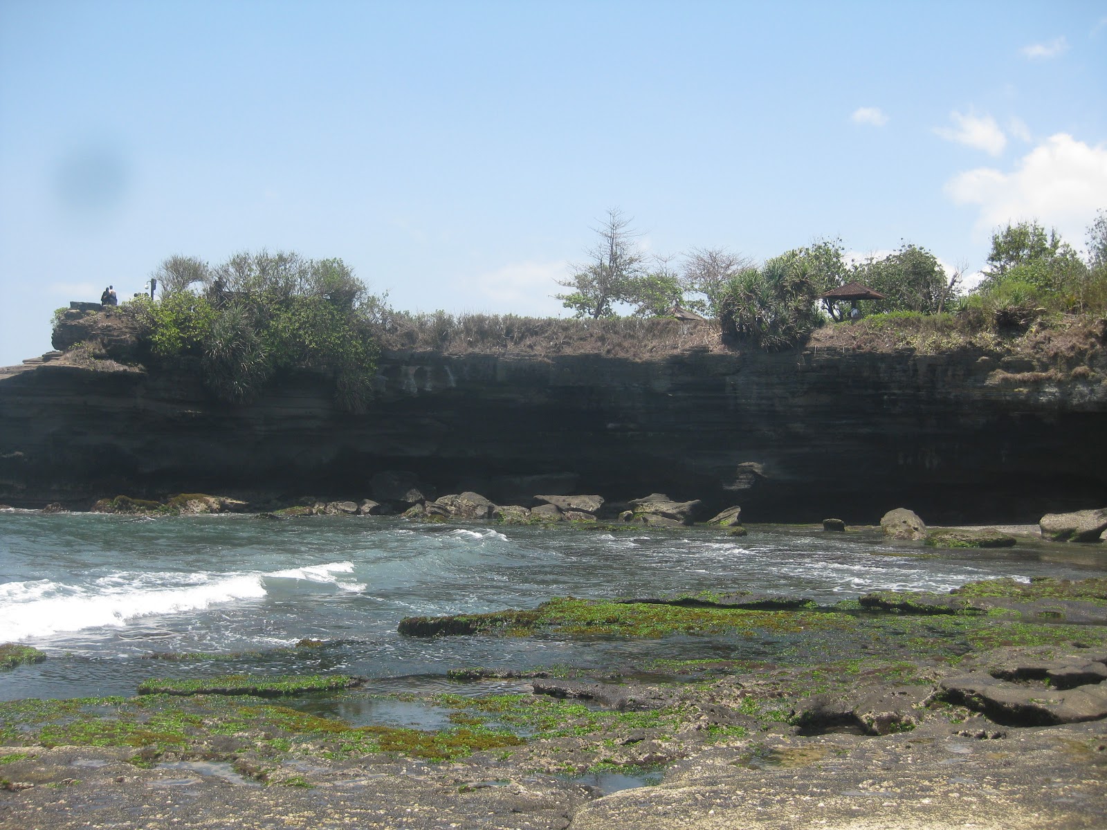 Selese sarapan, pergilah kita ke Tanah Lot. Sempet deg-degan karena kok mendung, tapi ternyata lama-lama cerah lagi. Setelah nanya beberapa orang, bolak-balik cek GPS, sampailah kita ke suatu pantai cantik banget... yang bukan Tanah Lot! Sukses nyasar sodara-sodara!!!